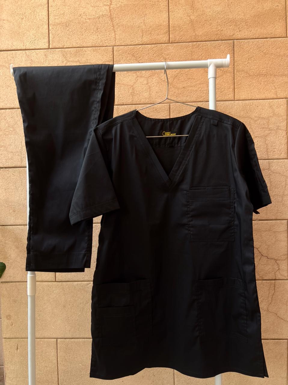 Stay confident and comfortable in our Jet Black Stretchable Flexiwear Scrubs, designed with a PolyCotton spandex blend for flexibility and a feel-good fit.